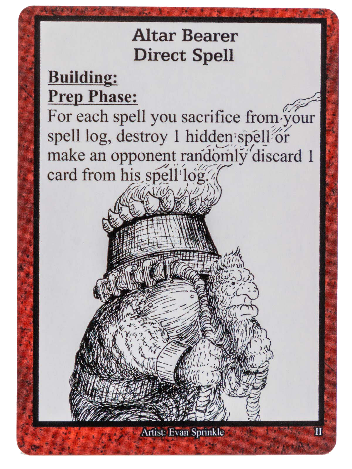 – Pick a number of spells from your spell log and shuffle them back into your library. Then make an opponent randomly pick from their spell log and shuffle that same number of spells into their library or pick that number of hidden spells on the table and shuffle them back into their owner’s library.