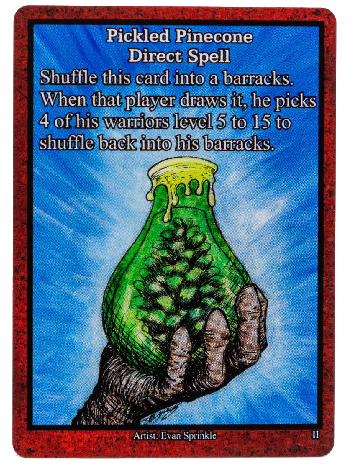 – Example 1: I sacrificed 2 warriors to cast a conjure spell. A level 5 warrior and a level 7 warrior. Before the conjure spell hits the table this world curse is triggered. My opponents’ armies must now kill 2 different warriors. One must be level 5 or higher and the other one must be level 7 or higher. Then this world curse resolves.