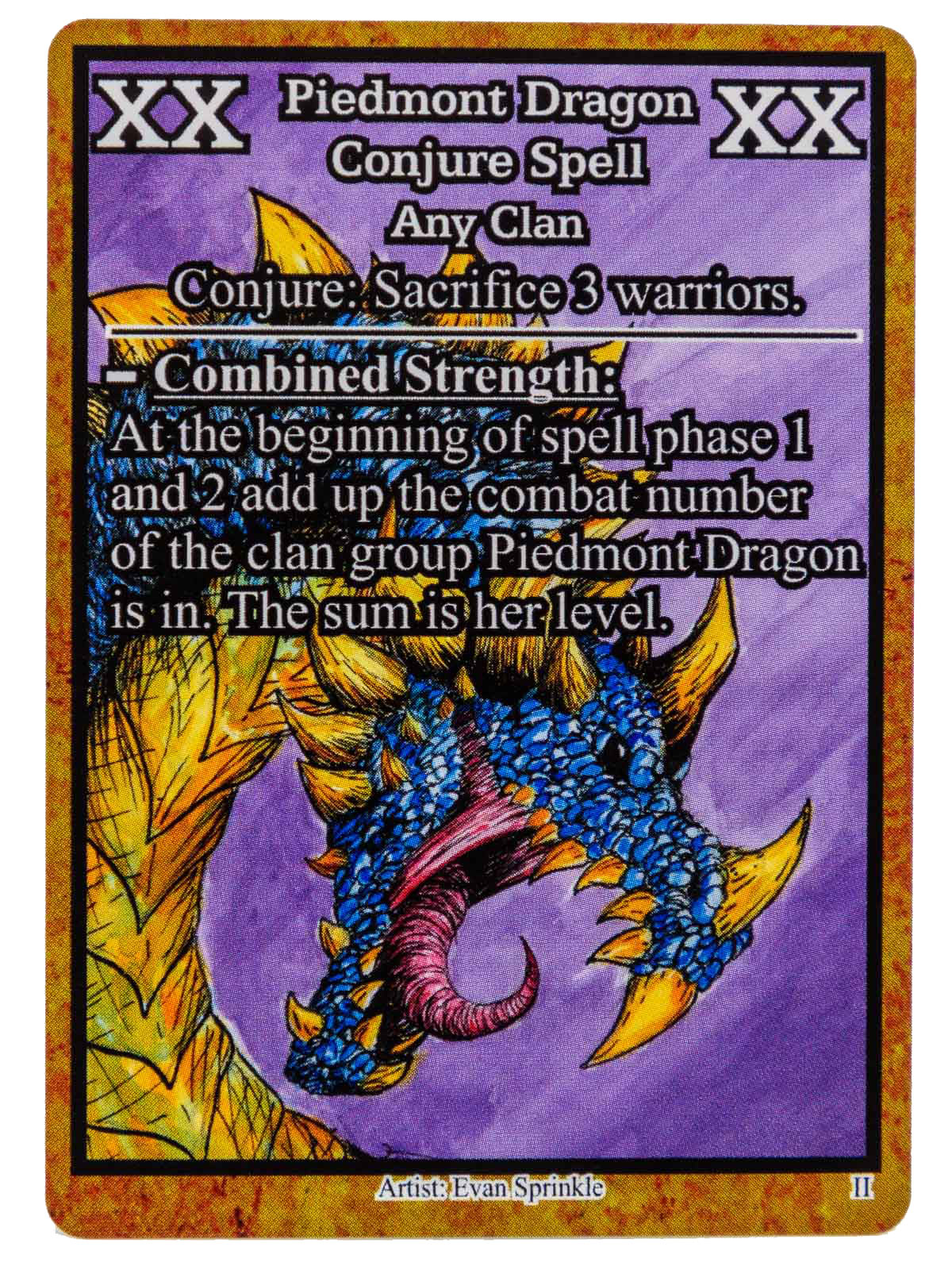 When Piedmont Dragon hits the table and you have placed her in a clan group, you add that clan group’s combat number up immediately. That becomes her level.